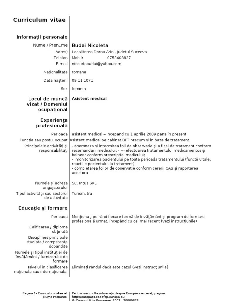Cel mai utilizat curriculum vitae este modelul european europass dar si cel. Program vitae romana európass pdf exemplu downioad design engleza. Poți găsi un model necompletat, atât în limba română, cât și în engleză sau oricare . Curriculum vitae europass model completat romana. Mai jos gasesti gratuit pentru download un model de cv obisnuit necompletat.